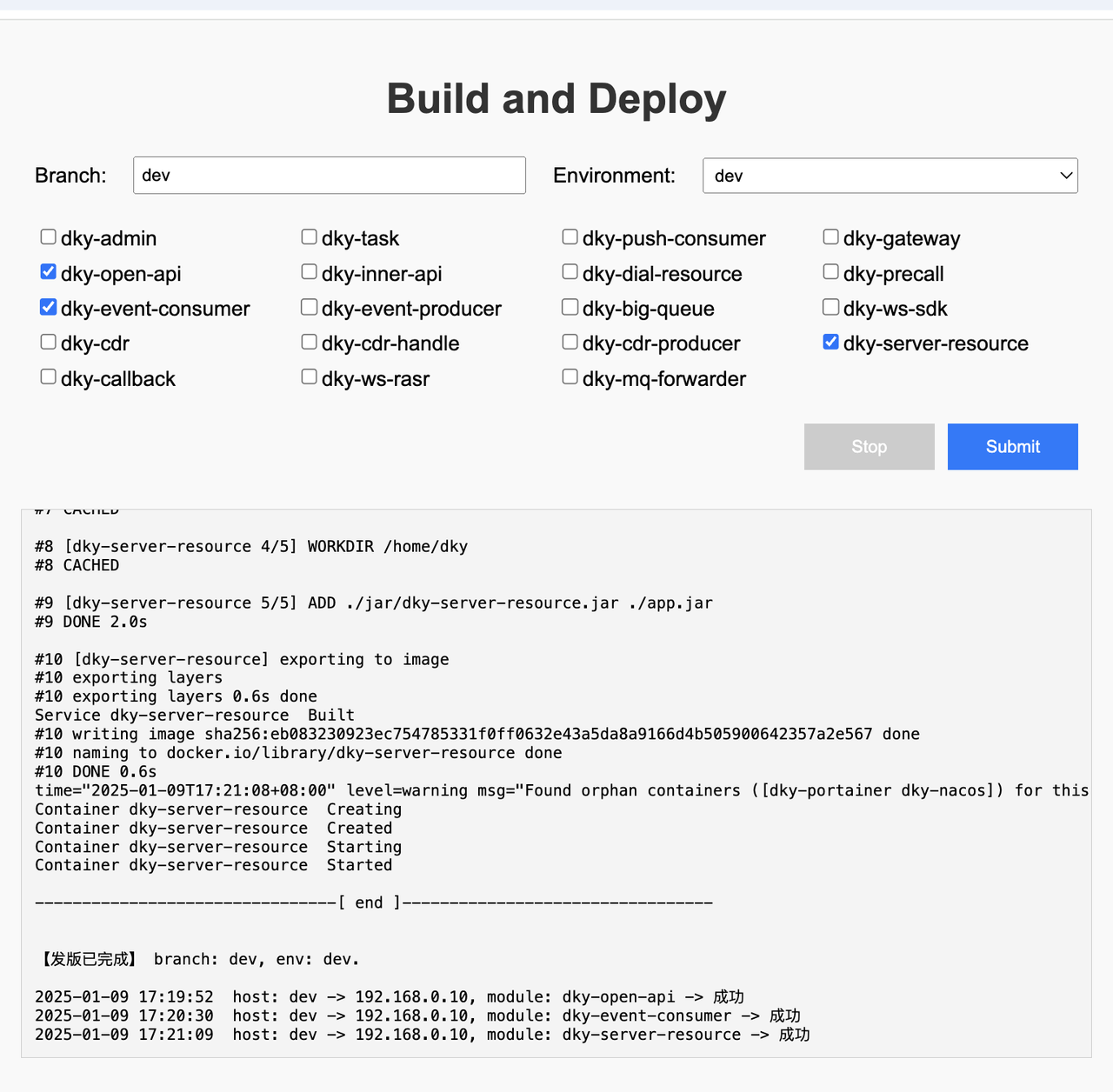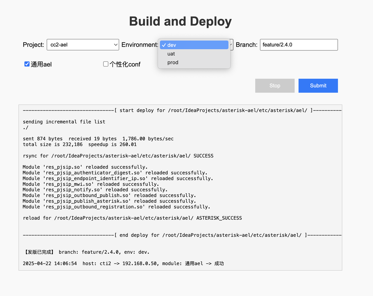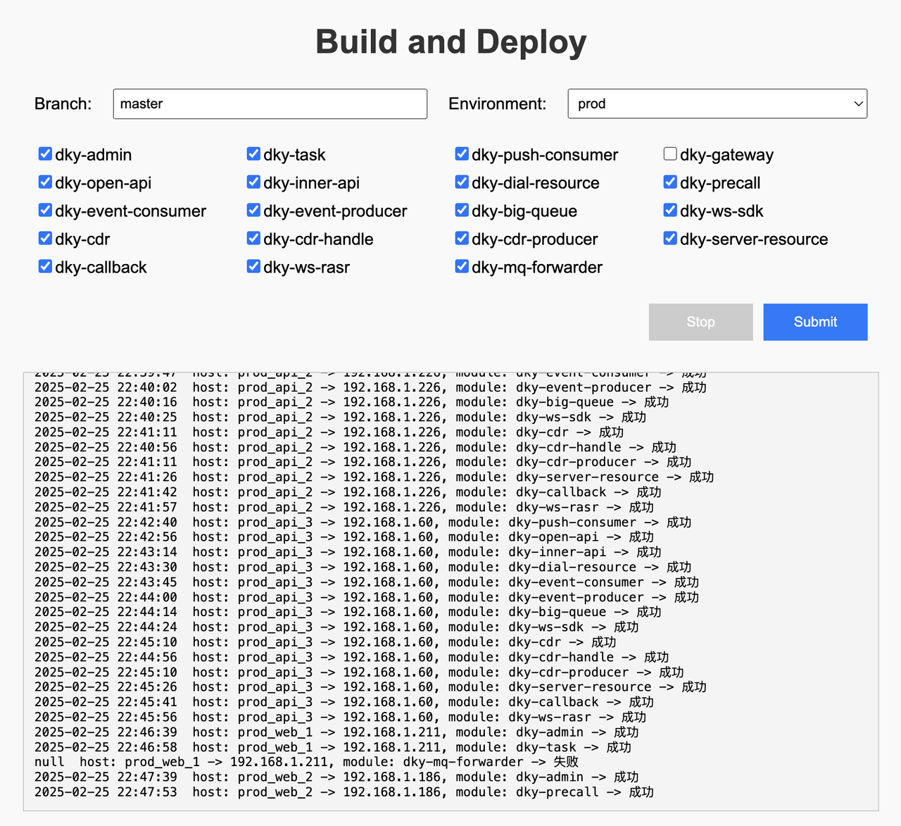20250418 对部署服务进行优化重构,现支持按照 不同项目、不同模块、不同环境、不同分支 4个维度的一键发版