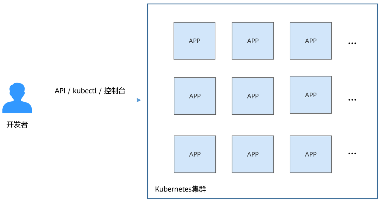 Kubernetes可以把大量的服务器看做一台巨大的服务器,在一台大服务器上面运行应用程序。无论Kubernetes的集群有多少台服务器,在Kubernetes上部署应用程序的方法永远一样。