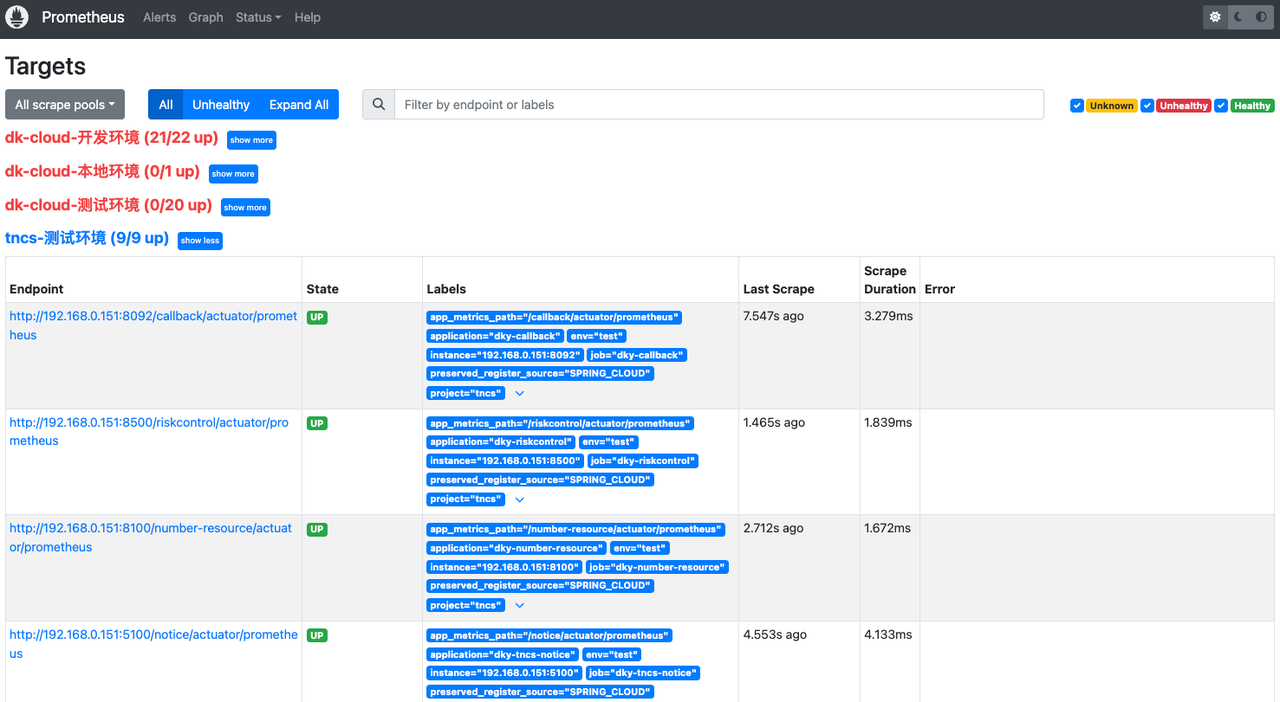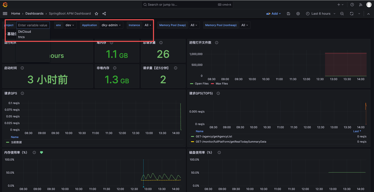 更新如下变量,支持按项目、环境、应用查看对应服务监控。