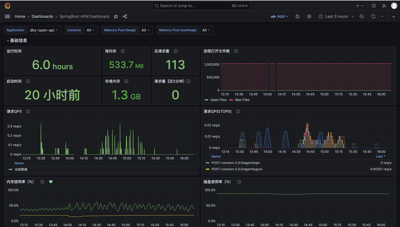 使用的是这个模版:https://grafana.com/grafana/dashboards/21319-springboot-apm-dashboard/